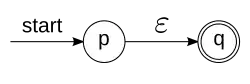 Die -Übergänge in nichtdeterministischen endlichen Automaten sind Tupel aus der Übergangsrelation mit Zuständen . Ein solcher Übergang bedeutet, dass der Automat seinen Zustand von nach ändern kann, ohne dass ein Zeichen gelesen wird. -Übergänge sind damit einer der Gründe für Nichtdeterminismus. Sie werden im Graphen als Kanten kenntlich gemacht, die mit einem beschriftet sind.