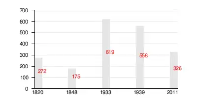 - ↑ Für 1820, 1848, 1933 und 1939; Swat 1978, S. 200