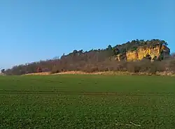 Von der Ostseite des Plateaus auf dem Lehof bietet sich ein weiter Blick auf das nördliche Harzvorland und nach Süden auf Quedlinburg und den Harz.