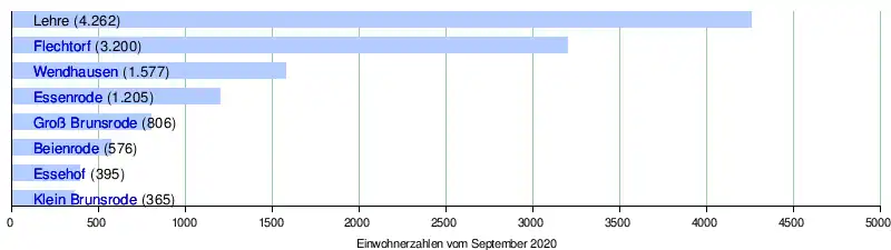 Am 1. März 1974 wurde der Landkreis Braunschweig, zu dem Lehre gehörte, aufgelöst, und Lehre wurde dem Landkreis Helmstedt zugeordnet. Essenrode hatte zum Landkreis Gifhorn gehört, bis es am 1. Juli 1972 nach Lehre eingemeindet wurde.