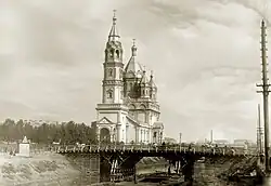 Die Kirche diente auch als Gedenkstätte für Gefallene des Ersten Weltkriegs, wurde jedoch zu Sowjetzeiten, im Rahmen der Unterdrückung der Russisch-Orthodoxen Kirche, bis Anfang 1930 als Lagerraum genutzt. Im Jahre 1934 wurde das bereits beschädigte Gebäude samt den fünf Türmen dann gesprengt[1]. Auf dem gegenwärtig unbebauten Terrain befindet sich lediglich eine Autowäsche. Nach Planungen der Stadtväter und der Kirche soll das baugeschichtlich wertvolle Gebäude nach Originalplänen an historischer Stätte wieder neu erbaut werden.
