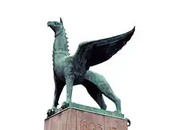 Am 27. März 2014 wurde der Greif vorläufig vor dem Prinz-Max-Palais, unweit des Europaplatzes, an der Straßenecke Karlstraße/Akademiestraße, aufgestellt, um für eine Ausstellung zu werben. Im Oktober 2021 wurde der Greif von dort wieder entfernt, nachdem sich Personen nachts unerlaubt am Greif zu schaffen machten. Bis zu seiner endgültigen Rückkehr auf den Europaplatz bleibt der Greif in einem Depot eingelagert.[4]