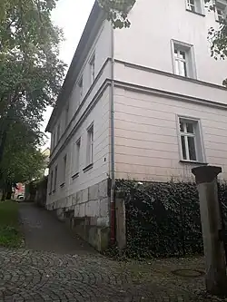 Dass Hoffmann 1854 in Weimar Zuflucht fand, verdankte er Franz Liszt und Bettina von Arnim. In demselben Hause wohnte später die Schriftstellerin Gabriele Reuter.[2] An dem Gebäude befindet sich eine Gedenktafel für Hoffmann von Fallersleben[3], eine für Gabriele Reuter jedoch nicht. Allerdings wohnte sie auch in der Freiherr-vom-Stein-Allee 5, woran sich eine Gedenktafel für sie befindet.