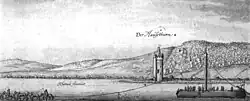 Treidelschiff vor Bonn und Siebengebirge, Kupferstich von Peter Schenk, 1852 -
