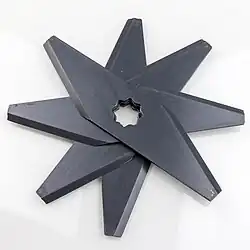 - Häcksler mit kegelförmiger Schwungscheibe („Kegelkopfschneidwerk“) oder schräg gestellter Messerscheibe ziehen das Häckselgut selbsttätig ein, sofern die Messerscheiben nicht abgenutzt sind.