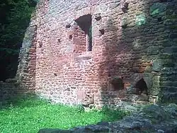 Die Mauern der Kirchruine sind aus rotem Sandstein gebaut. Von den Längsseiten sind nur noch die Grundmauern und niedrige Mauerreste vorhanden. Das frühere Dach war mit Dachziegeln eingedeckt, der ehemals vorhandene Glockenturm war Ausgrabungen zufolge vermutlich mit Schiefer bedeckt.