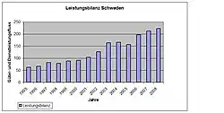 Das folgende Beispiel soll die Entwicklung der Leistungsbilanz von Schweden in den Jahren 1995–2008 zeigen.