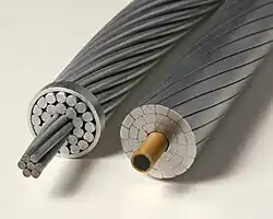 Seile aus Aldrey, einer Aluminiumlegierung mit 0,5 % Magnesium und 0,5 % Silicium, bieten hohe Zugfestigkeit auch ohne Stahlkern.