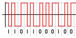 | Leitungsbits: | 1 0 | 1 0 | 1 0 | 1 0 | 1 0 | ... | 1 0 | 1 0 | 1 0 | 1 0 | 0 1 | 0 1 | 1 0 | 1 0 | 0 1 | 0 1 | 0 1 | 0 1 | 0 1 | ... |
