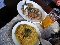 - Kiselo – mit Sauermilch übergossene Kartoffelkoteletts mit Fleischfüllung, mit Knoblauch und Minze scharf gewürzt