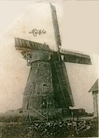 ![]() (Postkartenausschnitt, vor 1909) Die Mühle | ||