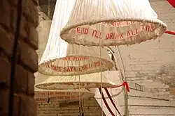So schuf sie eine begehbare Installation aus Ballkleidern vom Wiener Opernball, die 2017 in Berlin[43] und 2021 auf der open art Lausitz[44] ausgestellt wurde. Die Ballkleider hingen wie Fallschirme an der Decke des Ausstellungsraumes und luden Besucher ein, in sie hineinzukriechen, um die dort eingenähten Texte lesen zu können.