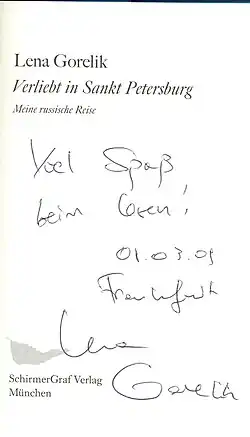 - ↑ a b Sharon Adler: Vita von Lena Gorelik. Abgerufen am 16. Juli 2022.