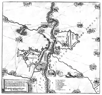 Die Stellungen der Schweden und Kaiserlichen 1644 bei Bernburg, dargestellt im Theatrum Europaeum