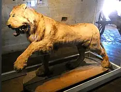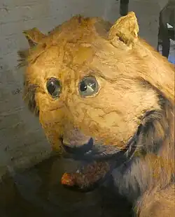Der Löwe befindet sich in einem Glaskasten im Oberen Zeughaus des Schlosses. Er wurde im 18. Jahrhundert präpariert. Das Tier wird stehend mit erhobener linker Vorderpfote dargestellt. Seine Augen liegen zu eng nebeneinander, aus seinem menschenähnlichen Gebiss hängt eine übergroße Zunge. Bekannt ist Leo als Beispiel einer völlig misslungenen Rekonstruktion des lebenden Tieres, was bei Besuchern zu Erstaunen bis Gelächter führt.[1] Wahrscheinlich hat der Präparator nur das Fell und Knochen, aber nie einen kompletten Löwen gesehen.[2]