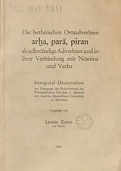 - Die hethitischen Ortsadverbien arḫa, parā, piran als selbständige Adverbien und in ihrer Verbindung mit Nomina und Verba, 1936.