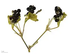 Die Kapselfrucht weist eine Größe von 2,5 bis 3 × 1,5 bis 2,5 cm auf. Die schwarzen Samen weisen einen Durchmesser von 5 mm auf.