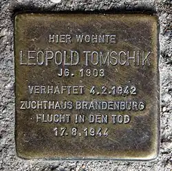 - ↑ Naturfreunde Berlin Oliver Kersten: Stolpersteine für Charlotte Eisenblätter, Paul Junius und Leo Tomschik zum 100-Jahre-Jubiläum Naturfreunde Berlin, 2008.