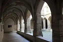 Das Rechteck des gotischen Kreuzgangs ist nicht groß, aber durch seine Geschlossenheit eindrucksvoll. Die Anlage wurde 1968 originalgetreu restauriert. Die Spitzbögen sind zum Innenhof mit vierstufigen Gewänden ausgestaltet. Den Gang überspannen Kreuzrippengewölbe. Die Hausüberbauung stammt aus dem 17. und 19. Jahrhundert.