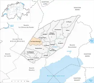Zu Les Hauts-Geneveys gehören zahlreiche Einzelhöfe auf den Jurahöhen. Nachbargemeinden von Les Hauts-Geneveys sind Boudevilliers, Fontaines, Fontainemelon und La Sagne.