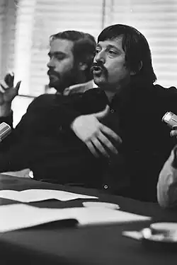 Wolf Biermann nach seiner Ausbürgerung bei einer Pressekonferenz in Amsterdam (1977)