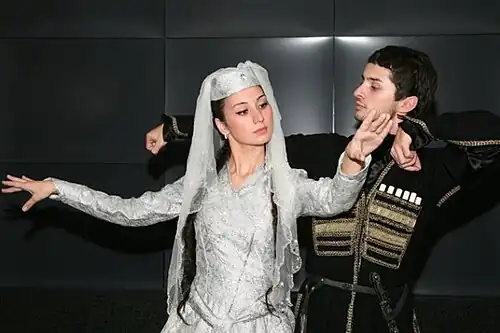 Die Lesginka (Lesgisch Лезги кьуьл, russisch Лезгинка) ist ein Volkstanz verschiedener Ethnien Kaukasiens, darunter die der namensgebenden Lesgier, des Weiteren anderer Dagestaner, der Aserbaidschaner, Georgier, Osseten, Tscherkessen, Abchasen, Inguschen, Tschetschenen, Karatschaier, seltener der östlicheren Armenier, sowie anderer kaukasischer Ethnien.[1] Die Lesginka ist ebenso ein türkischer Volkstanz, der größtenteils von der aserbaidschanischen Minderheit in den nordöstlichen Provinzen Ardahan, Iğdır und Kars, die 1878–1918/1922 zu Russisch-Kaukasien gehörten und damals im Kulturaustausch mit den übrigen Regionen standen, getanzt wird.