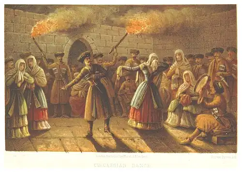 - ↑ Eine traditionelle Hochzeit der östlichen Tscherkessen (Kabardiner) am oberen Terek zeigt beispielsweise Teil 2 der in den „Weblinks“ verlinkten Reportage ab min. 7:52 mit dem folgenden Teil 3 mit allen Ritualen, Bräuchen und Tänzen, aufgenommen um 1990.