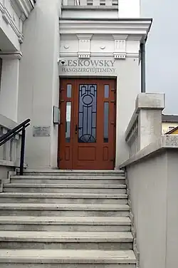 Das im neoklassizistischen Stil zwischen dem Bahnhof von Kecskemét und der Innenstadt errichtete Gebäude der Musikinstrumentensammlung wurde ehemals als Kino genutzt. Im November 1913 wurde in dem Gebäude das erste und damals größte Kino der Region, das Stadtkino (Városi Mozi), eröffnet. Es war mehr als 80 Jahre lang das wichtigste Kino der Stadt, mit mehreren Aufführungen pro Tag auf mehreren Leinwänden. Erbauen ließ es die Kecskeméter Kinotheater GmbH (Kecskeméti Mozgóképszínház Rt.), ausgeführt wurde es durch den Architekten József Ecker aus Temesvár. Das Gebäude wurde in den Jahren 1935 und 1968 renoviert. Im Dezember 1999 wurde das Stadtkino geschlossen. 2012 beschloss der Bürgermeister Gábor Zombor, das sich mittlerweile in einem schlechten Zustand befindliche Gebäude von Grund auf renovieren zu lassen, um darin die Leskowsky-Instrumentensammlung und das László-Kelemen-Kammertheater unterzubringen.