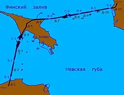 | ⮝ | 59° 59′ 38″ N, 29° 41′ 25″ O | Fl.(2)R | UKHO C4011.2 NGA 13021.1 |