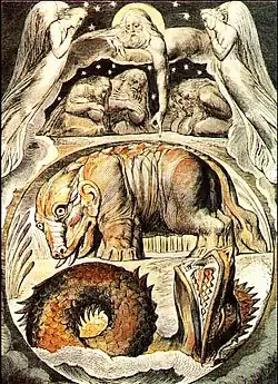 Nach einer üblicherweise zum Schawuot vorgetragenen Hymne namens Akdamut bzw. dem Talmud-Traktat Bava Bathra kommt es nach der Schlacht von Harmagedon am Ende der Zeiten zu einem Kampf zwischen den Ungeheuern Leviathan und Behemoth, bei dem dieser seinen Widersacher mit den Hörnern aufzuspießen versucht, während Leviathan mit seinen Flossen nach dem Landungeheuer schlägt.