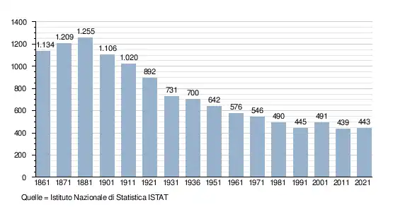 - ↑ Bilancio demografico e popolazione residente per sesso al 31 dicembre 2024. ISTAT. (Bevölkerungsstatistiken des Istituto Nazionale di Statistica, Stand 31. Dezember 2024).
