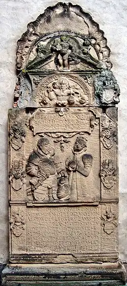 Wappenstein Leyser von Lambsheim und von Handschuhsheim, 1585 (neuzeitlich falsche Tinkturen) -