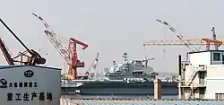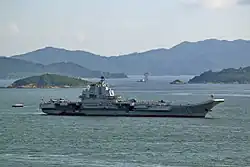 Die Liaoning (chinesisch 辽宁号航空母舰, Pinyin Liáoníng Hào hángkōngmǔjiàn) ist der erste Flugzeugträger der Marine der Volksrepublik China. Das Schiff gehört zur Admiral Kusnezow-Klasse und wurde unter dem Namen Riga, dann Warjag für die Sowjetische Marine gebaut, blieb aber unvollendet und wurde von der Ukraine 1998 an China verkauft. Dort wurde der Träger trotz gegenteiliger Darstellung der chinesischen Regierung rundum erneuert, ausgerüstet und lief am 10. August 2011 zu einer ersten Probefahrt aus dem Hafen von Dalian aus.[3] Am 25. September 2012 wurde er der Marine offiziell übergeben.[4]