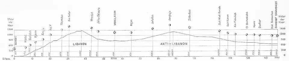 - ↑ Heutige Kilometrierung in Syrien; bei Errichtung der Strecke wurden die Kilometer von Beirut gezählt – siehe Tabelle.