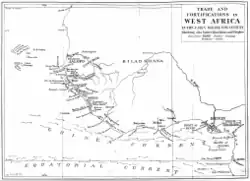 Portugal errichtete eine Reihe Stützpunkte im heutigen Liberia, das Gebiet wurde aber keine portugiesische Kolonie, und der später hier einsetzende Sklavenhandel lag dann schon in den Händen anderer Länder. Anfang des 17. Jh. unterhielt Portugal aber noch über ein Dutzend Handelsniederlassungen zwischen dem Cape Palmas im heutigen Liberia bis zum Fluss Volta im heutigen Ghana.[6]