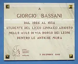 Im Jahr 2002 wurde das Atrium des Gymnasiums dem Gedenken an Giorgio Bassani gewidmet. Der Schriftsteller machte dort 1934 sein Abitur und verarbeitete später in seinen Werken seine Schulerfahrung in Ferrara.[8][9] In diesem Raum wurde eine Skulptur von Annibale Zucchini aufgestellt.