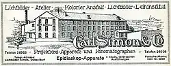 Carl Simon, Sohn von Johann Wilhelm und Katharina Simon, wuchs in Dreifelden (Westerwald) auf und lernte den Kaufmannsberuf in einem Gemischtwarengeschäft. 1896 wechselte er als Mitarbeiter zur Firma Liesegang nach Düsseldorf und kam dort mit der Fotobranche in Kontakt. 1907, in der Blütezeit der deutschen Lichtbildprojektion als Volksbildungsinstrument,[3] machte er sich als Diahändler selbständig und gründete in Düsseldorf die „Lichtbildanstalt Carl Simon & Co.“, die in der Kronprinzenstraße 92 in Düsseldorf-Unterbilk angesiedelt war und im Düsseldorfer Adressbuch des Jahres 1911 als „Institut für Projektion“ bezeichnet ist.[4] Simon spezialisierte sich in erster Linie auf den Vertrieb von Diapositiven, von denen er bis 1945 einen Lagerbestand von 80.000 Stück aufbaute.[5] Die Motive wurden dabei entweder als Bildserie von Diagroßhändlern eingekauft, mit Hilfe von Reprovorlagen angefertigt oder als regionale Sehenswürdigkeiten – eventuell eigenhändig – fotografiert. Zu jeder Bildserie gehörte ein Vortragsheft, in dem die einzelnen Bildmotive beschrieben wurden und aus dem ein Sprecher während der Projektion vorlas.