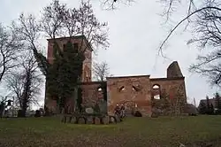 Nach der Zerstörung im Zweiten Weltkrieg wurde das Trümmergestein zum Wiederaufbau der Häuser im Ort genutzt. Die Kirche wurde von 1945 bis 2000 dem Verfall preisgegeben.