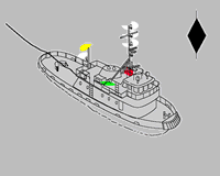 [24a (v)] Wenn der Schleppzug länger als 200 m ist, muss ein rhombusförmiger Signalkörper dort geführt werden, wo er am besten zu sehen ist. [24h und i] Schiffe, die üblicherweise nicht zum Schleppen eingesetzt werden, brauchen keine Schlepplichter zu führen, wenn ihnen das nicht mit vertretbarem Aufwand möglich ist. Dies gilt auch für Fälle, in denen Schiffe aus einer Notlage heraus geschleppt werden müssen. In solchen Fällen sollte versucht werden, das geschleppte Fahrzeug oder die Schleppleine möglichst gut zu beleuchten. |