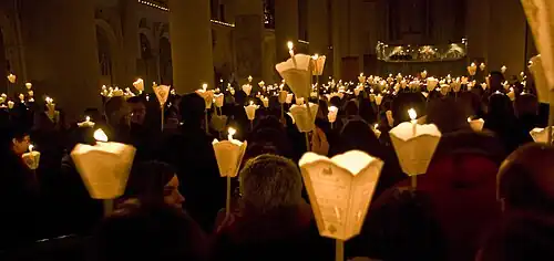 Die Lichterprozession Saint-Nicolas (französisch Procession aux flambeaux de Saint-Nicolas) ist eine Prozession, die in Saint-Nicolas-de-Port südöstlich von Nancy seit dem Jahre 1246 alljährlich an dem Samstag stattfindet, der dem Nikolaustag, dem 6. Dezember, am nächsten ist.[1] Die Veranstaltung ehrt St. Nikolaus als Schutzpatron der Stadt und der gesamten Region Lothringen. Bei dem volkstümlichen Kirchenfest sind in der Kleinstadt mit etwa 7500 Einwohnern regelmäßig über 20.000 Besucher anwesend.[2] In Lothringen ist St. Nikolaus so populär wie anderswo der Weihnachtsmann.[3]