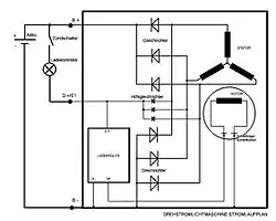 Ladekontrolllampe bei der Drehstromlichtmaschine