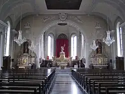 in der Zwischenzeit war die Abtei St. Blasien, die das Patronat über die Kirche hatte und damit zum Bau verpflichtet war, aufgehoben worden. Die in kirchlichen Angelegenheiten auf Sparsamkeit bedachte großherzogliche Regierung verfügte die Wiederverwendung von Teilen der Innenausstattung des Domes St. Blasien. Ein beträchtlicher Teil der Alabasteraustattung überstand jedoch den Transport nicht. Daneben wurde auch aus der alten Kirche Material wiederverwendet.