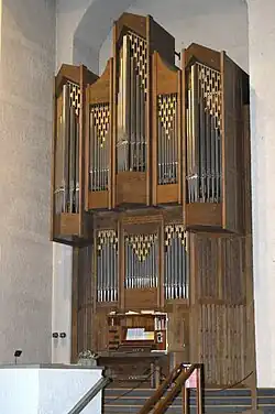 Die Mayer-Orgel der Kirche von 1989 hat Schleifladen mit mechanischer Spiel- und elektrischer Registertraktur. Für den Prospekt wurde gekalkte Eiche und für das Innere des Spielschrankes Palisander verwendet. Das Instrument verfügt über 28 klingende Register, die auf zwei Manuale und Pedal verteilt sind.[1] Die Orgel wurde 2013 im Zuge der Renovierung der Kirche generalüberholt.