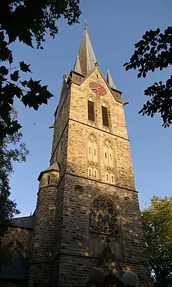- ↑ Bis zur Spitze des Kirchturmdaches sind es 59,30 Meter, bis über Kreuz und Hahn 62,89 Meter. Früher wurde eine Höhe von 67 Meter angenommen. (Quelle: Kirchenführer zum 100-jährigen Jubiläum des Kirchenbaus, Holzwickede 2004)