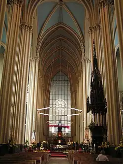 Leopold II. ließ die Kirche schließlich vollenden. Der Münchner Architekt Heinrich von Schmidt entwarf das Portal und den 99 m hohen Turm für die Westfassade.