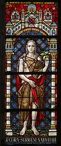 Der Westgiebel ist zwischen sich kreuzenden Strebepfeilern erbaut, das Spitzbogenportal von Archivolten eingerahmt, die auf Säulen mit Knospenkapitellen ruhen. Darüber sind zwei Lanzettfenster angeordnet, flankiert von kleinen Lanzettfenstern unter lanzettförmigen Blindnischen.
