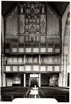Im Jahre 1921 spendete der Witzenhäuser Fabrikanten Eduard Staffel eine Orgel, die die Dresdner Orgelbaufirma Jehmlich Orgelbau Dresden baute und die in einem Festgottesdienst am 11. September 1921 eingeweiht wurde.[3] Die Orgel war ein älteres Werk, welches 1854 von Fa. Jehmlich für eine andere Kirche hergestellt worden war und aufgrund eines größeren Neubaus zurückgekauft wurde. Zuvor begleitete ein Harmonium den Gemeindegesang. Es ersetzte eine ältere Orgel, deren Pfeifen (vermutlich zu Rüstungszwecken im Ersten Weltkrieg) abgegeben werden mussten.[4]