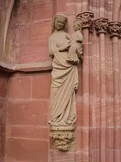 Um 1260 entstand das in der Kirche erhaltene, jedoch im 19. Jahrhundert durch Gottfried Renn aus Speyer entstellend überarbeitete Holz-Gnadenbild der Mutter Gottes.[1] Nordöstlich im Seitenschiff steht eine Figurengruppe „Anna Selbdritt“, ursprünglich vom Südportal und um 1276 geschaffen, deren Jesuskind allerdings verloren gegangen ist.[1]
