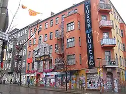 Fassade der Liebigstraße 14 mit Transparenten, 2009