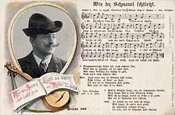 Anton Günter, der spätere Volkssänger aus Gottesgab in Böhmen (heute Boží Dar) brachte während seiner Lehre zum Lithographen in Prag 1895 mit „Drham is’ drham“ erstmals ein ganzes Lied mit fünf Strophen und zusammen mit einer eigenen einfarbigen Lithographie auf eine Postkarte. Die Erstauflage betrug 100 Stück. Günther selbst nannte die Karten Liederkarte.